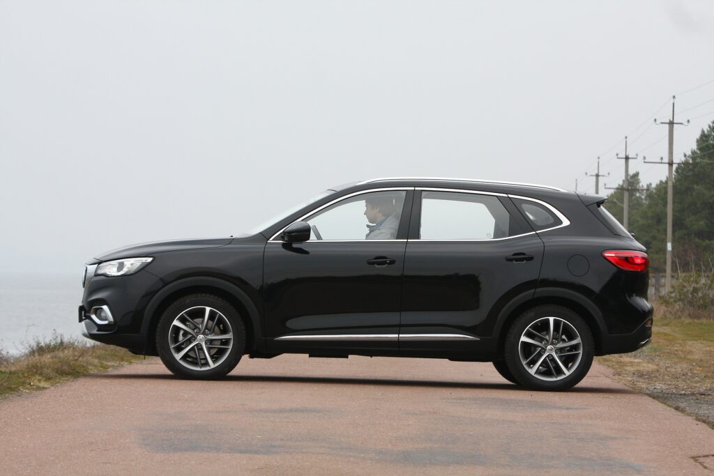 Новый MG HS 2021 – 4,5-метровый пятиместный кроссовер размером с Kia Sportage и Mazda CX-5. У него широкая решетка радиатора в виде улыбки, раскосые фары и выпуклые боковины. Расширенные задние крылья подчеркнуты продолговатыми фонарями. Тестовый авто оснащен 18-дюймовыми литыми дисками и даже двойным выхлопом.